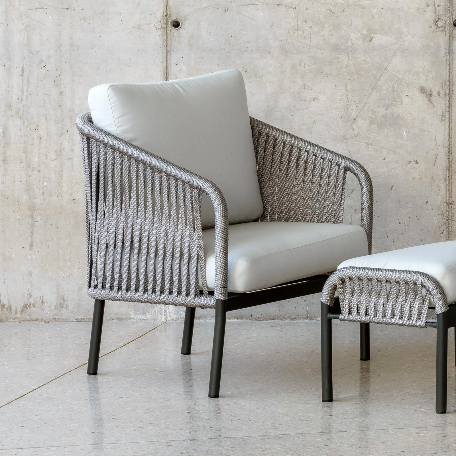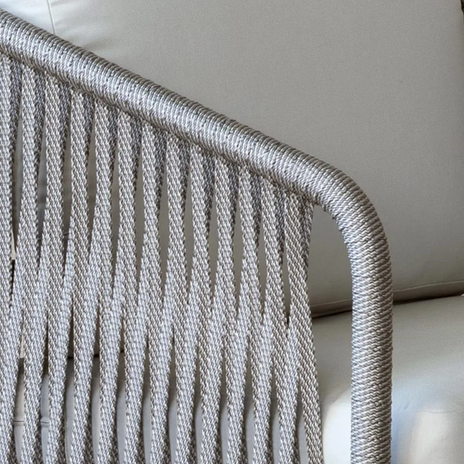 ¡Déjanos presentarte esta elegante silla exterior de cuerda, una verdadera joya que te dejará sin aliento! Esta obra maestra del diseño combina a la perfección la elegancia del aluminio con la textura cálida y acogedora de la cuerda trenzada, creando una experiencia visual y táctil fuera de este mundo.