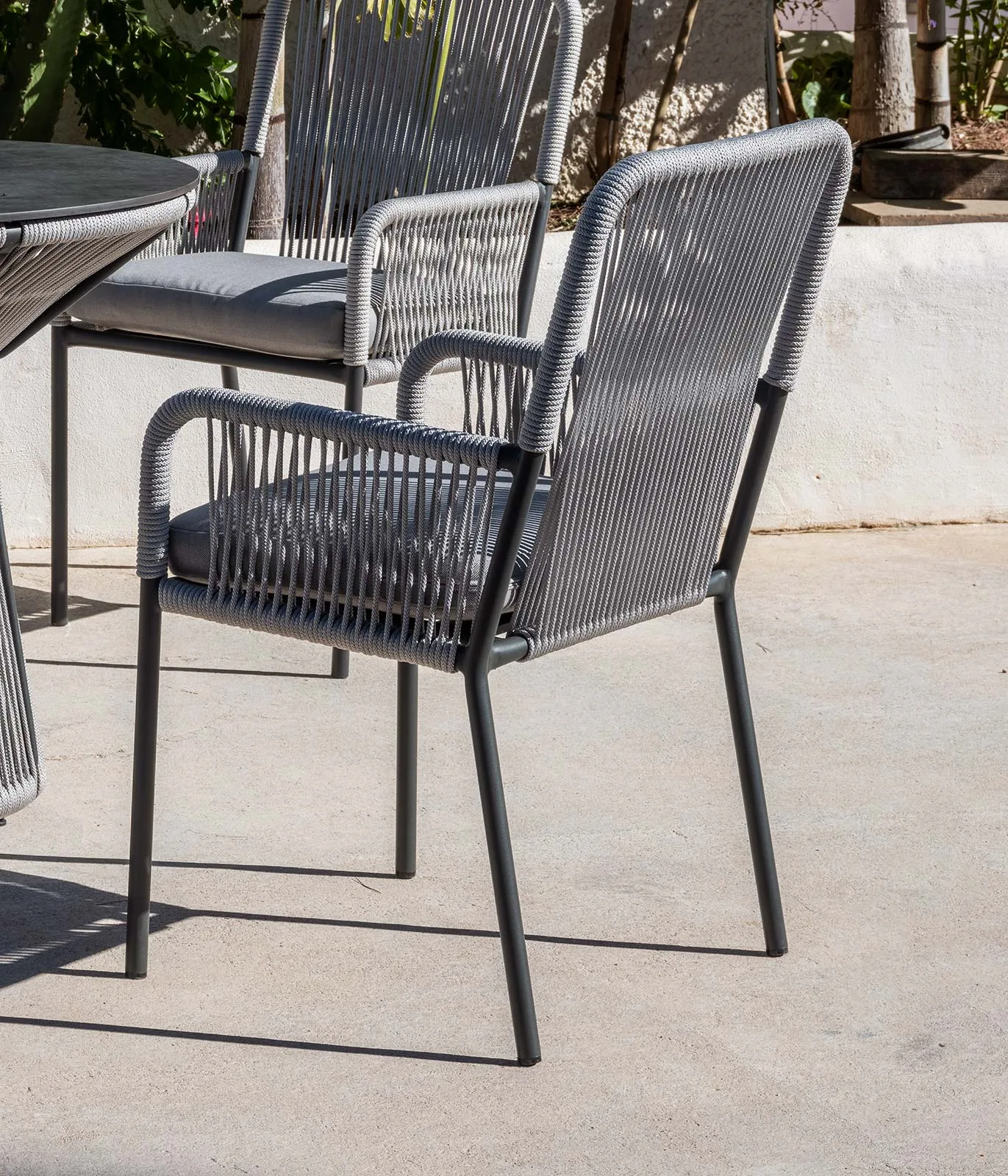 La resistencia se encuentra en cada detalle. La estructura de aluminio, ligera pero increíblemente resistente, asegura una durabilidad a largo plazo. La silla de jardín de cuerda no solo es estéticamente agradable, sino que también está diseñada para resistir los elementos, convirtiéndola en la opción perfecta tanto para interiores como exteriores.