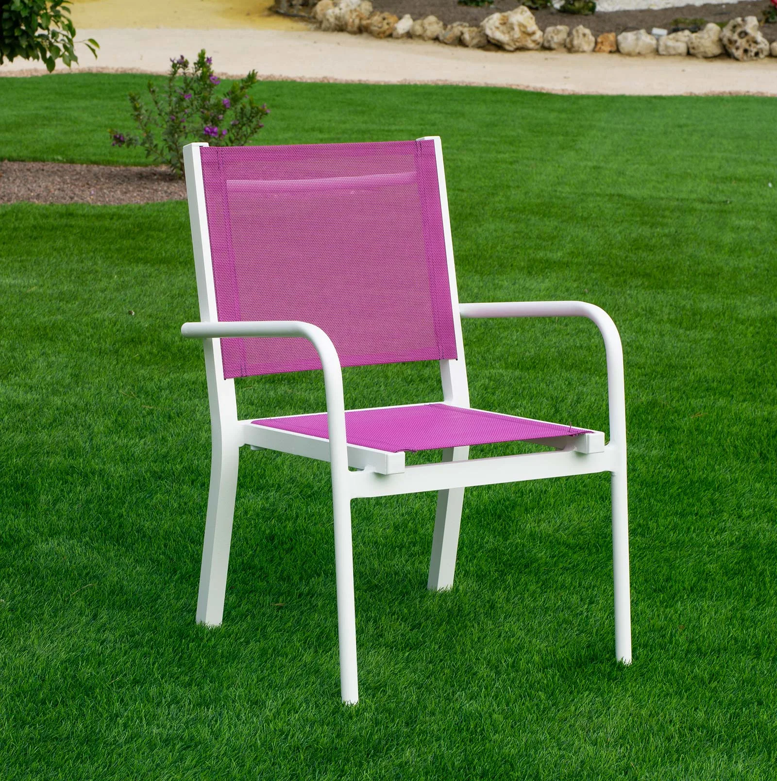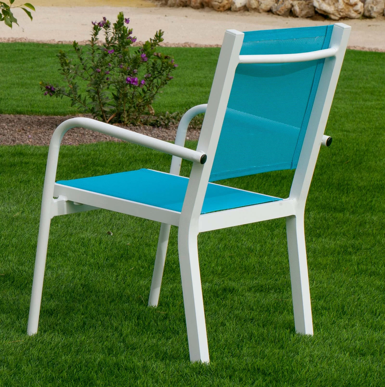 Hecha para resistir, esta silla de aluminio garantiza durabilidad y resistencia a las variadas condiciones climáticas. Su estructura de aluminio no solo es ligera para facilitar su movilidad, sino que también es robusta para soportar el uso diario. El textilene, conocido por su alta resistencia a los rayos UV y a la humedad, asegura que la silla mantenga su color y textura durante mucho tiempo, convirtiéndola en una inversión a largo plazo para su hogar.