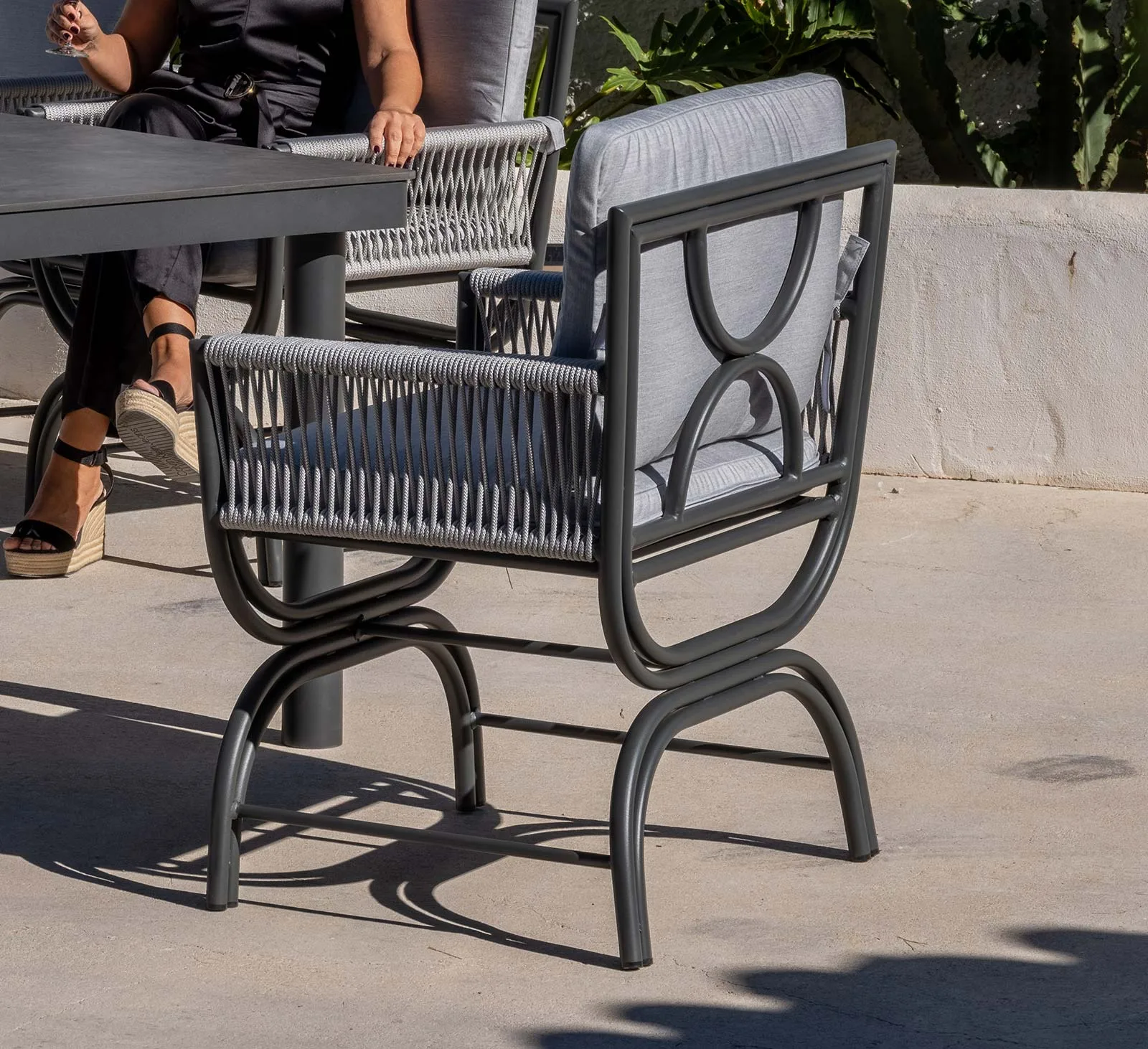 Nuestra silla de jardín con cuerda redonda, respaldada por una sólida estructura de aluminio y envuelta en la exquisita cojinería de la gama Dralón, redefine la experiencia de descansar al aire libre.