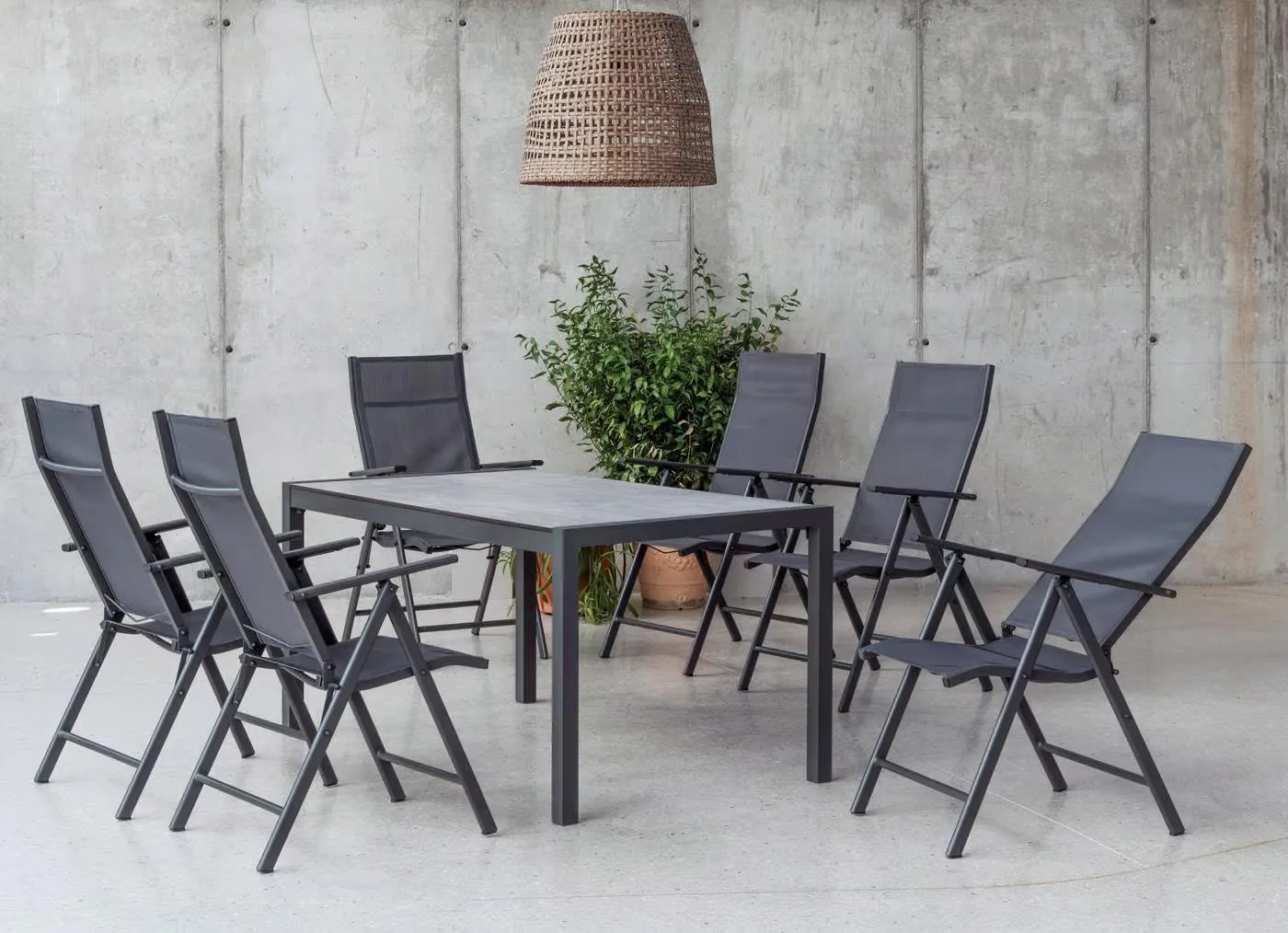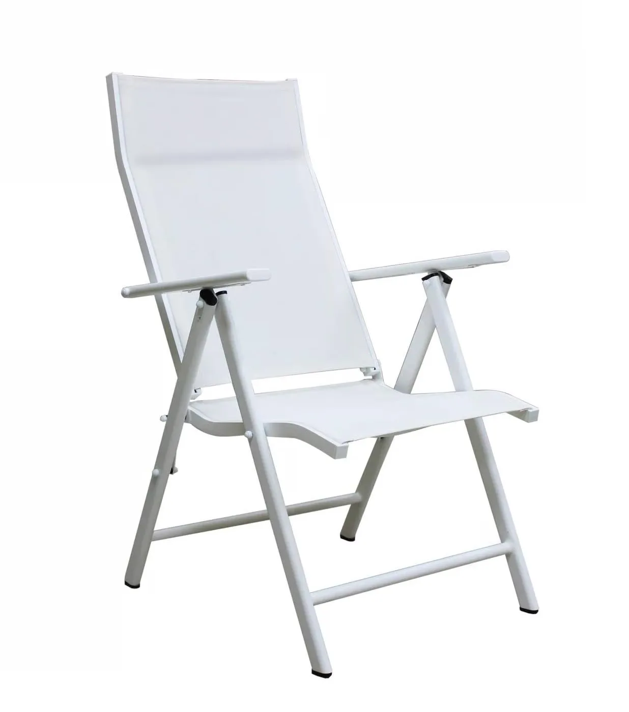 Su estructura, resistente y duradera, está fabricada en aluminio, lo que garantiza que podrás disfrutar de tu silla reclinable de exterior durante años. Su respaldo es reclinable, lo que nos permitirá atener un sillón multiposiciones de jardín. De esta manera conseguiremos encontrar la posición perfecta, ya sea que estés leyendo un libro, disfrutando de una bebida refrescante o simplemente relajándote bajo el sol.