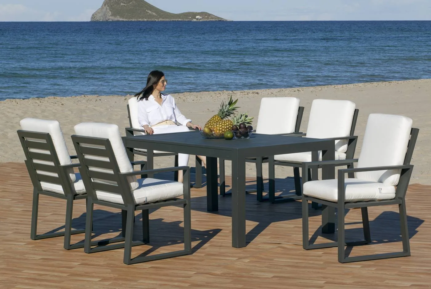 Disfrutar al aire libre nunca ha sido tan cómodo y elegante como con nuestro sillón para exterior de aluminio y cojines de alta calidad en tejido Dralón. Diseñado para brindar la combinación perfecta de durabilidad, estilo y confort, este sillón se convertirá en el epicentro de tus momentos de relajación al aire libre.