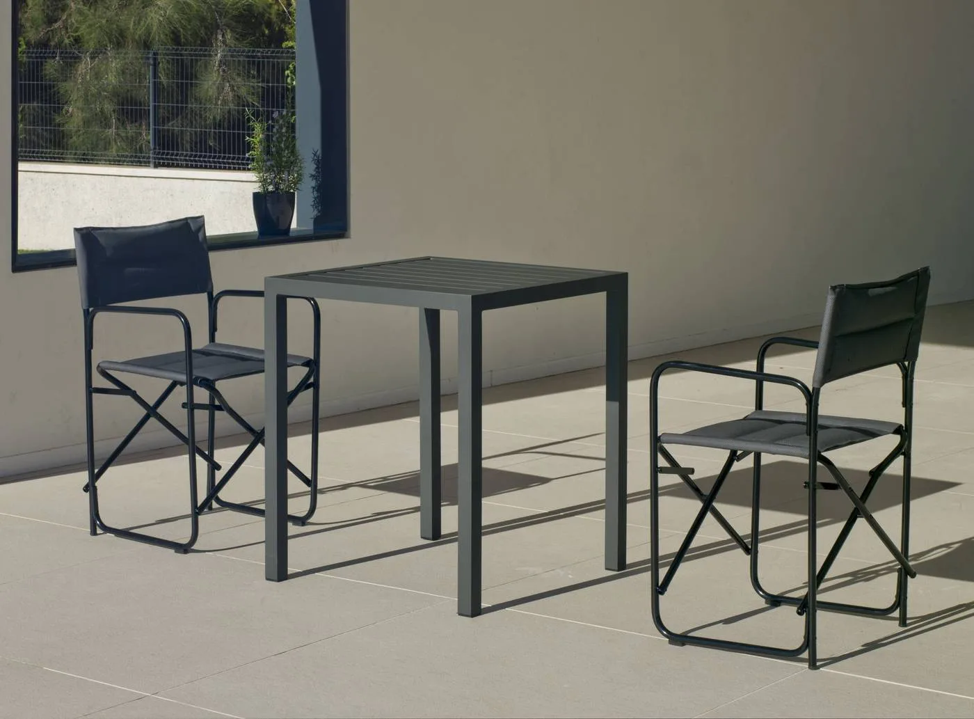 Nuestro silla de Director plegable combina elegancia, confort y practicidad en un diseño contemporáneo, ideal para aquellos que valoran la estética y la funcionalidad. Fabricada con una robusta estructura de aluminio y dotado de un acolchado suave de textilene, esta silla está disponible en dos colores neutros: blanco y gris antracita.