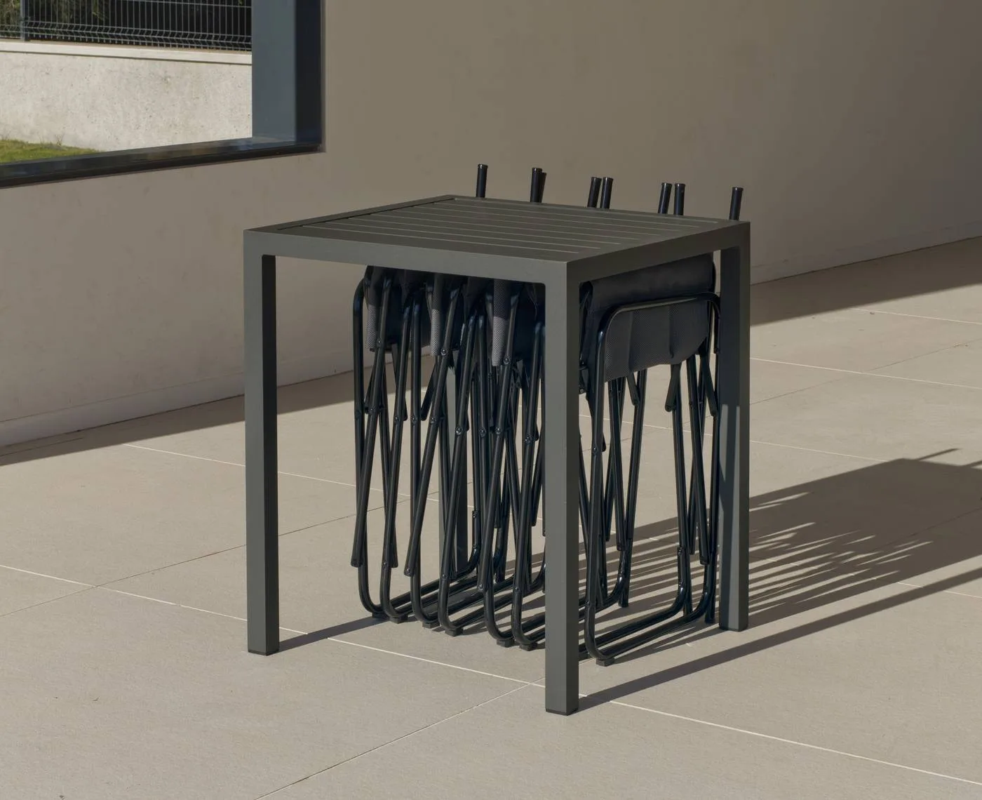 Estoy encantada, buscaba algo que no ocupara mucho espacio y el conjunto de mesa alta y taburetes que compré es lo que necesitaba. Es muy funcional para tomar un aperitivo o cenar de forma informal. Es aluminio es fácil de limpiar, y lo mejor de todo, los taburetes son muy cómodos. Lo recomiendo totalmente.