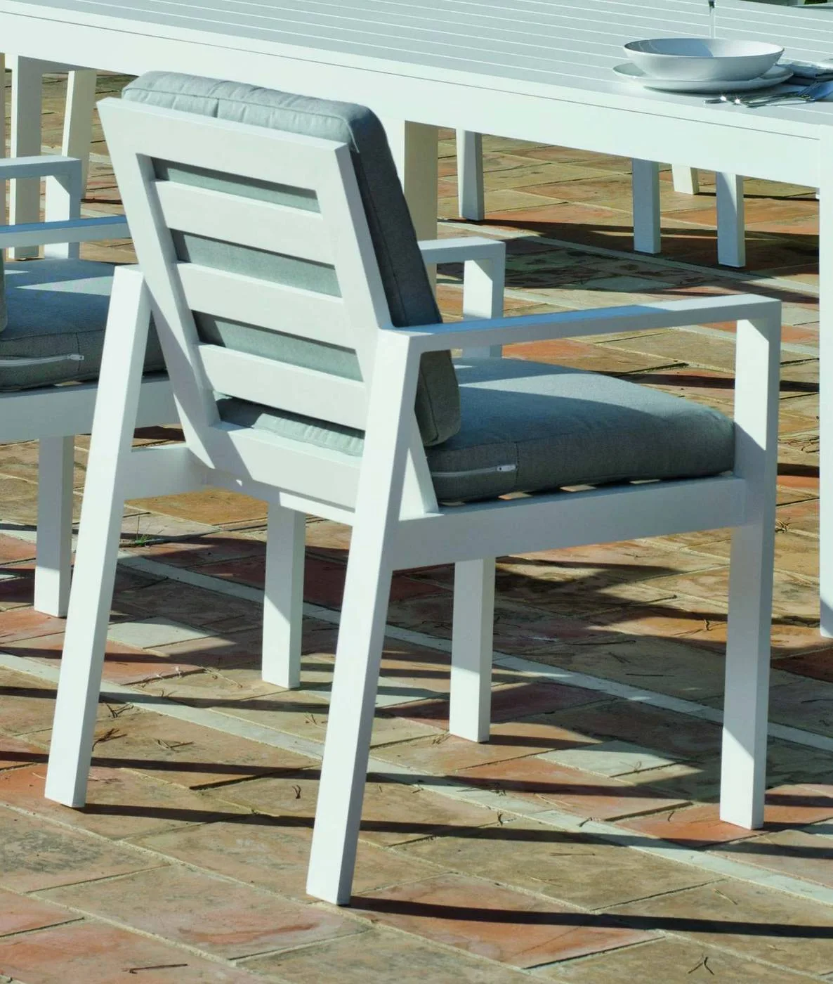 Este sillón de aluminio destaca por su diseño moderno y elegante que se adapta a cualquier tipo de ambiente exterior. Su estructura liviana de aluminio le proporciona resistencia y durabilidad, lo que significa que podrás disfrutar de él durante muchos años sin preocuparte por su deterioro.