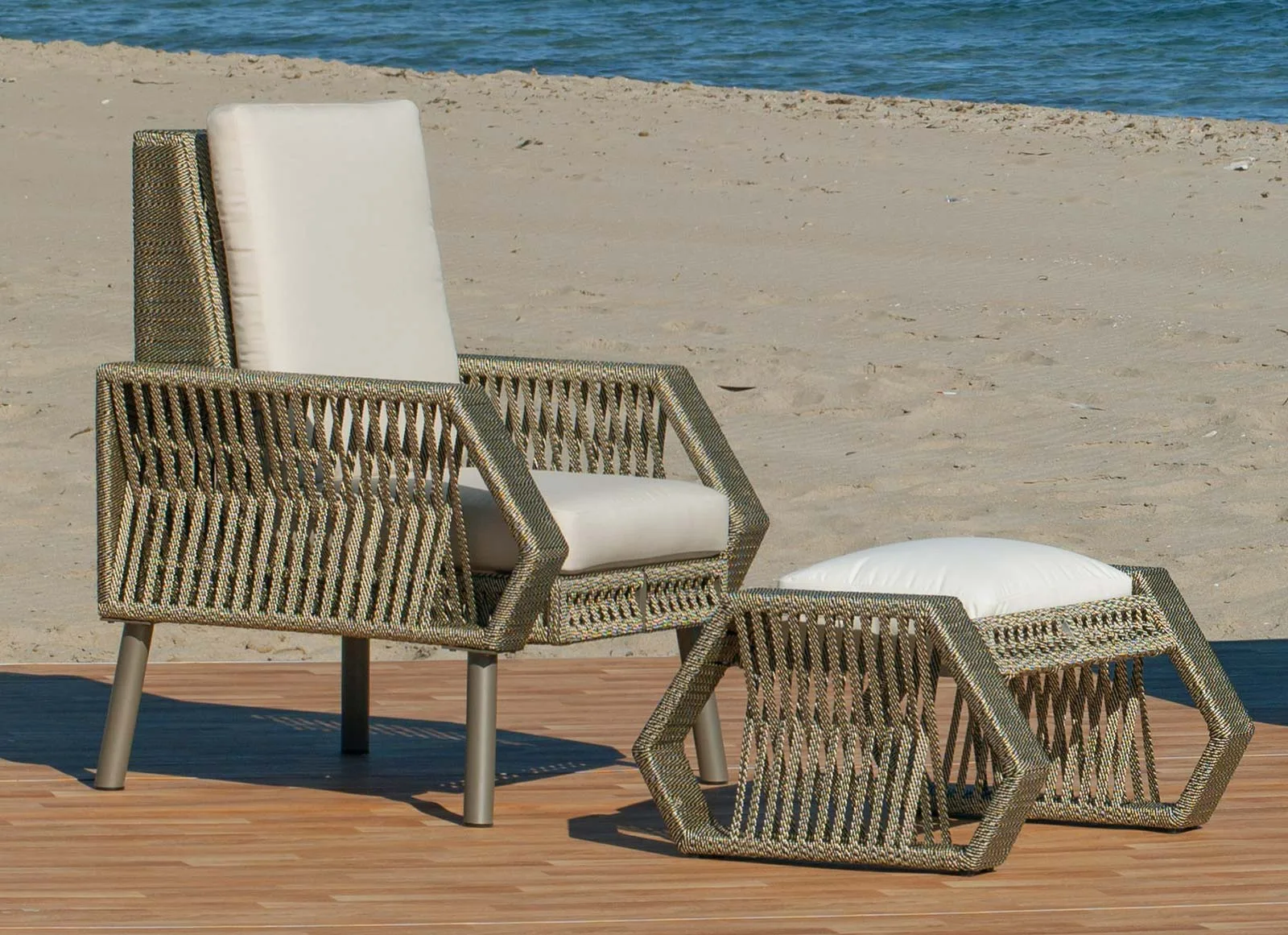 Este sillón está diseñado para resistir. La cuerda náutica, junto con la sólida estructura de aluminio, asegura durabilidad y resistencia a los elementos exteriores. Ideal para disfrutar durante años, tanto en interiores como en exteriores, manteniendo su belleza y funcionalidad.