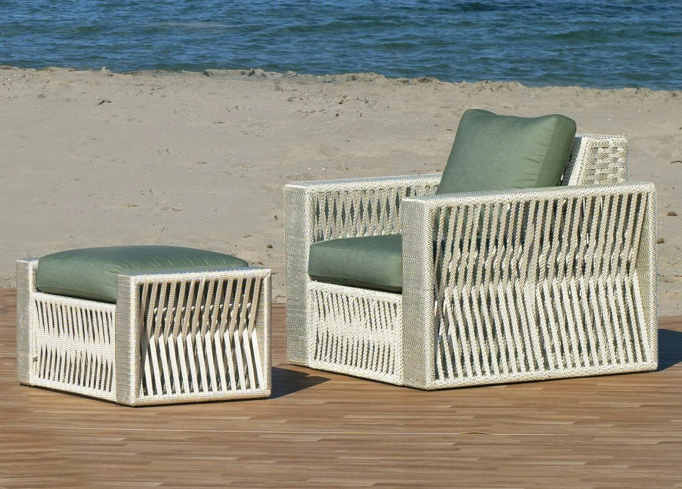 Sillón de cuerdas trenzadas exterior. Sillón elegante y cómodo