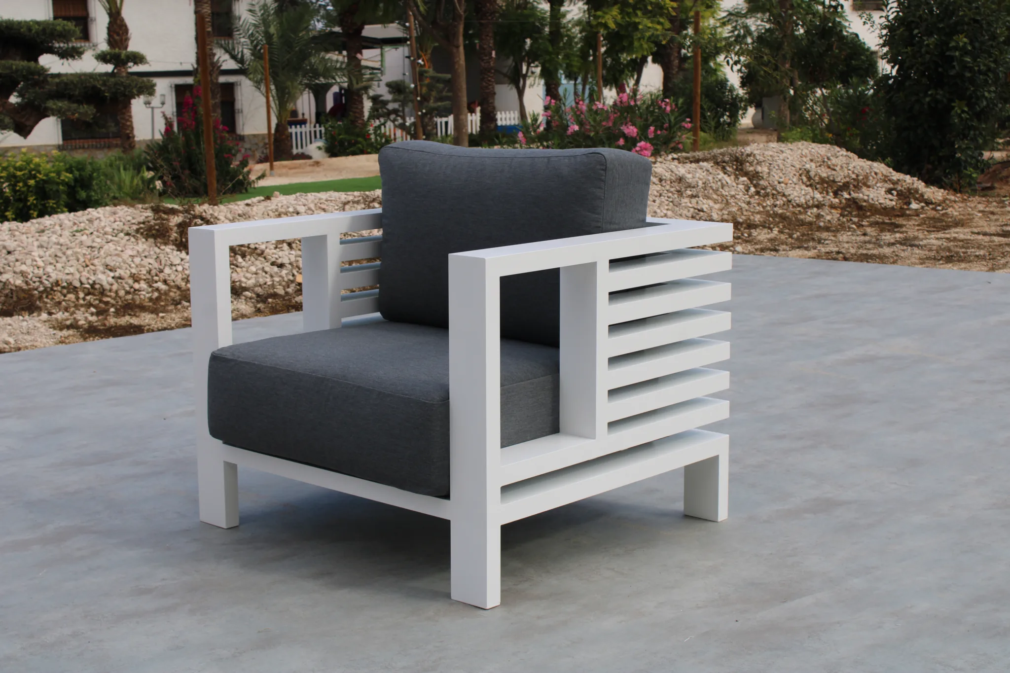 Gracias a la calidad de nuestros sillones de terraza, lucirás un espacio cómodo y sofisticado que podrás disfrutar durante mucho tiempo. Transforma tu jardín en un espacio de lujo con nuestro sillón de aluminio de alta gama y disfruta de la gran durabilidad que ofrece este material excepcional.