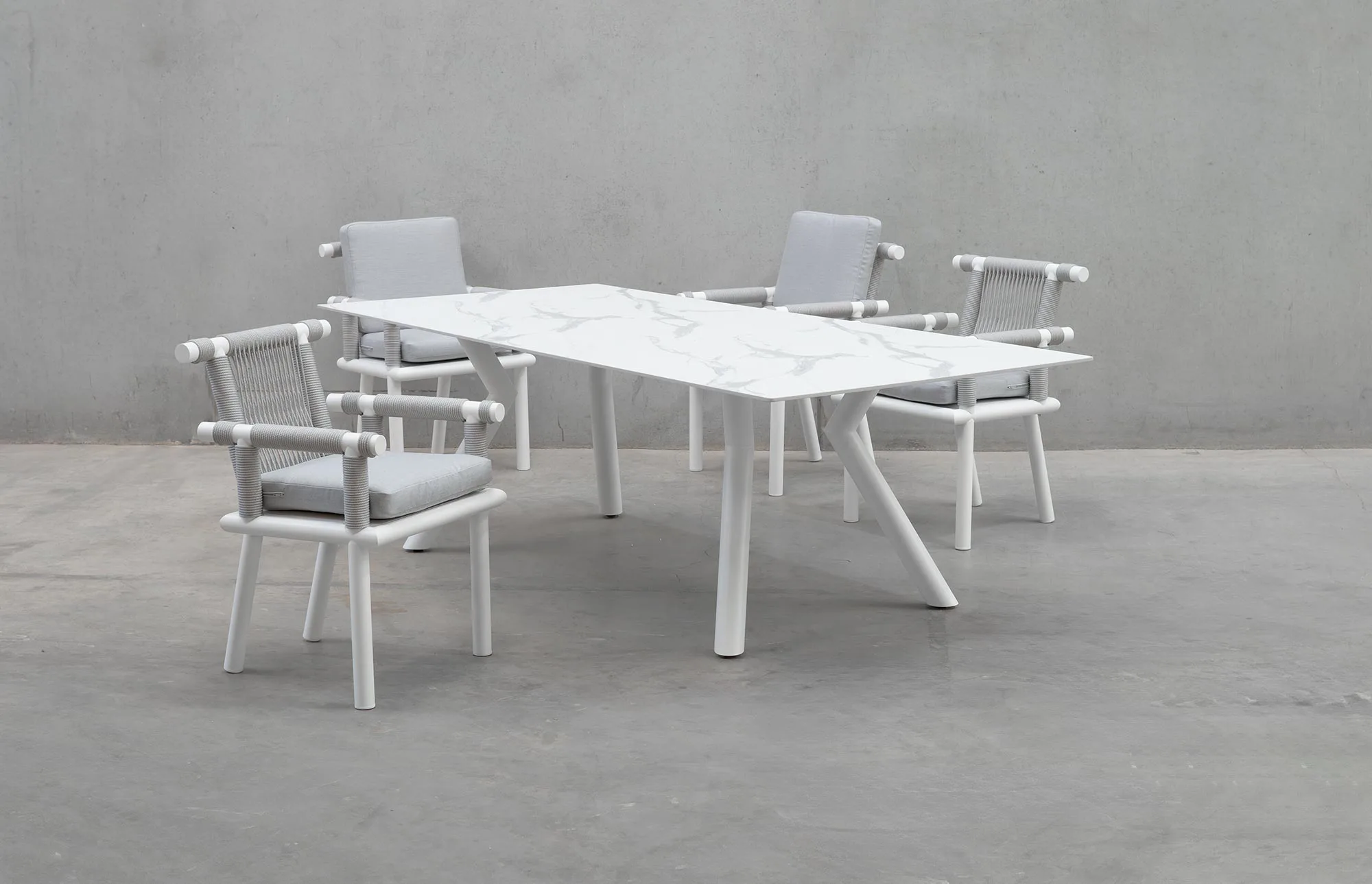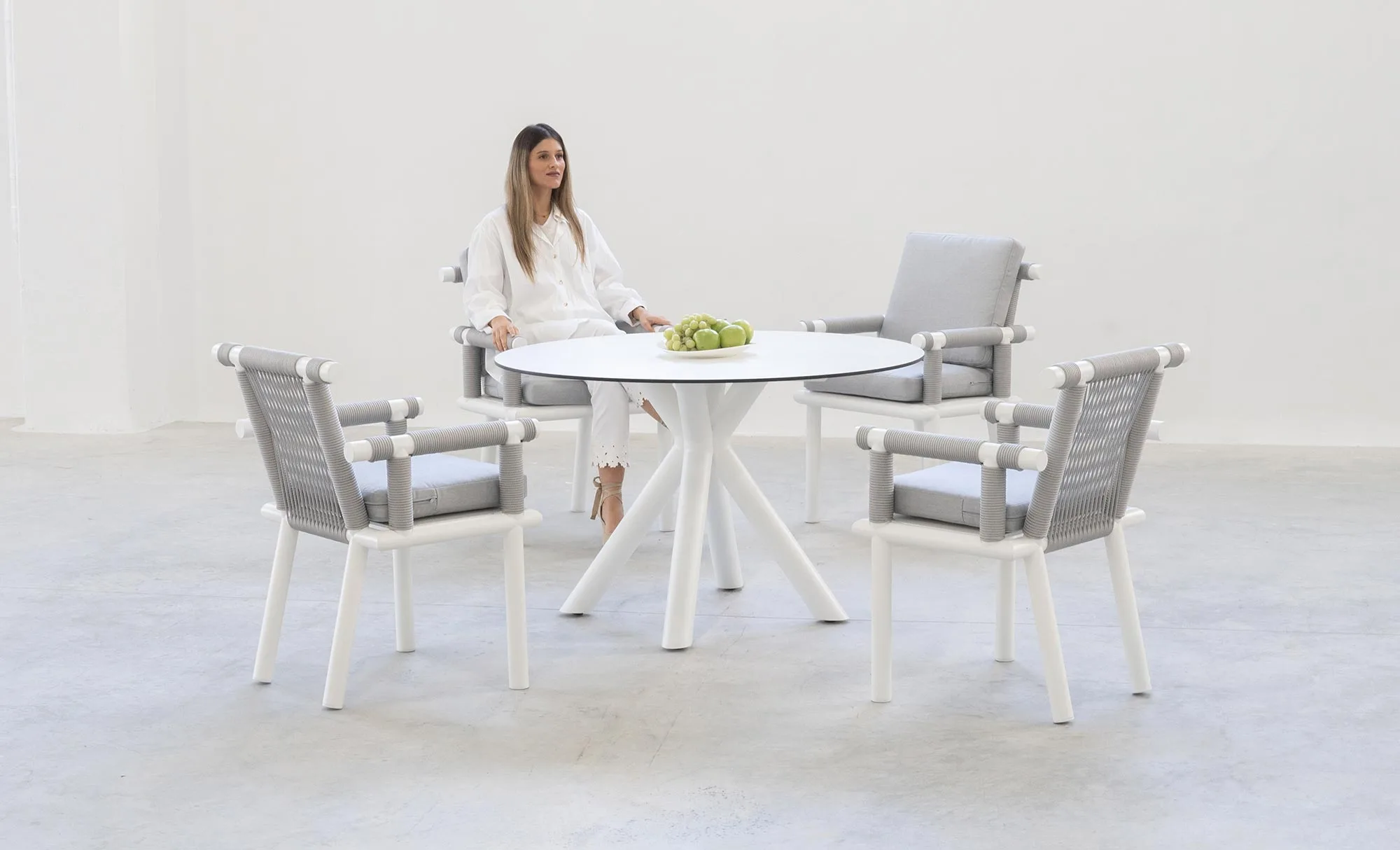 El sillón no solo destaca por su diseño, sino también por su comodidad. Los cojines desenfundables están fabricados con materiales de alta calidad que resisten el uso continuo y las inclemencias del tiempo. Su estructura de aluminio es ligera pero robusta, lo que facilita su movilidad sin comprometer la estabilidad. La cuerda trenzada redonda no solo es estética, sino también resistente al desgaste, asegurando que el sillón mantenga su aspecto impecable durante años. Además, su fácil limpieza lo convierte en una opción ideal para espacios exteriores donde el mantenimiento es clave.