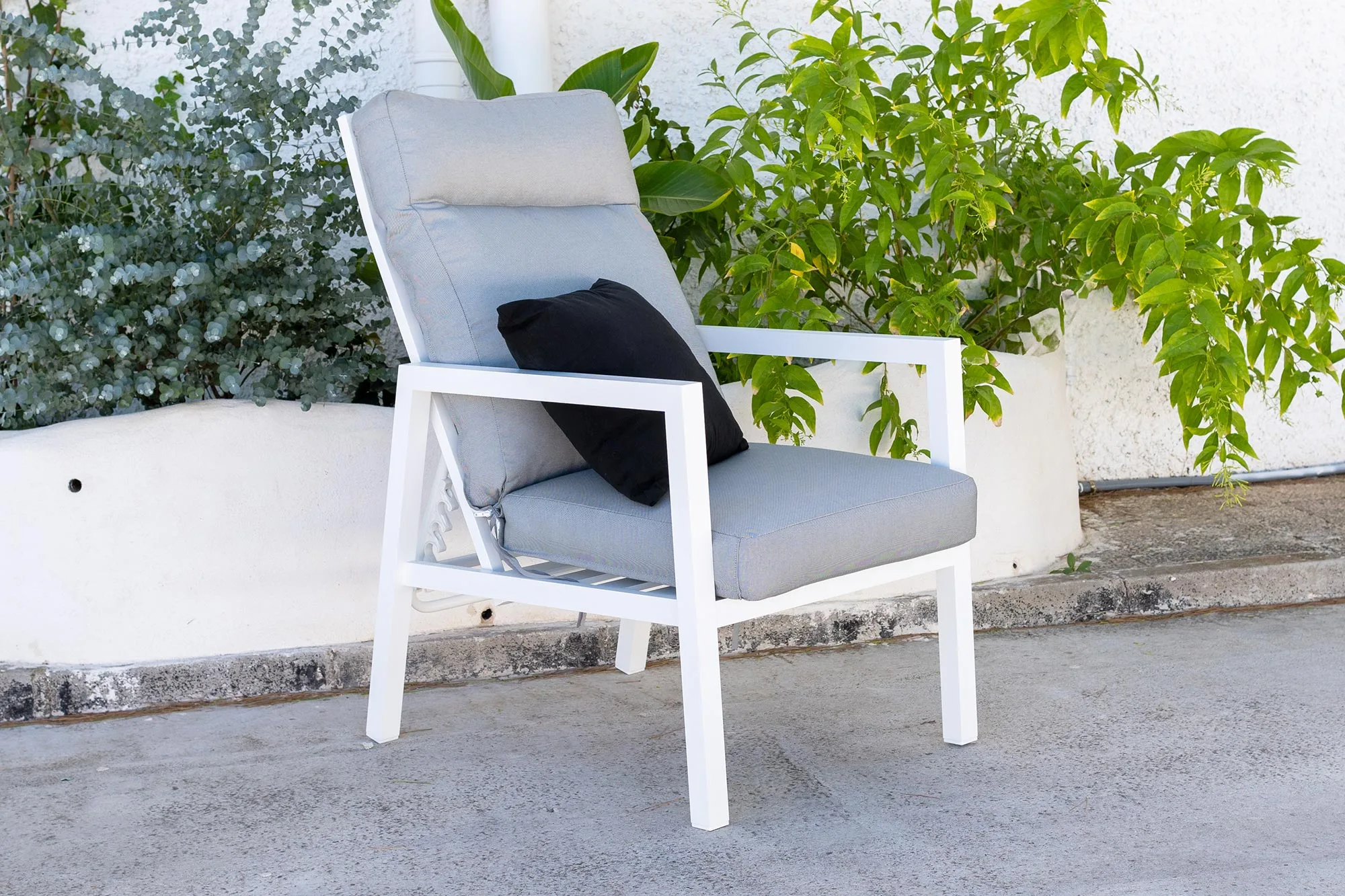 Siente la máxima comodidad y decora tu terraza o jardín con nuestro increíble sillón reclinable de exterior fabricado en aluminio. Esta fantástica silla de terraza reclinable te dará auténticos momentos de relajación y también se convertirá en la pieza central para decorar tu hogar al aire libre.