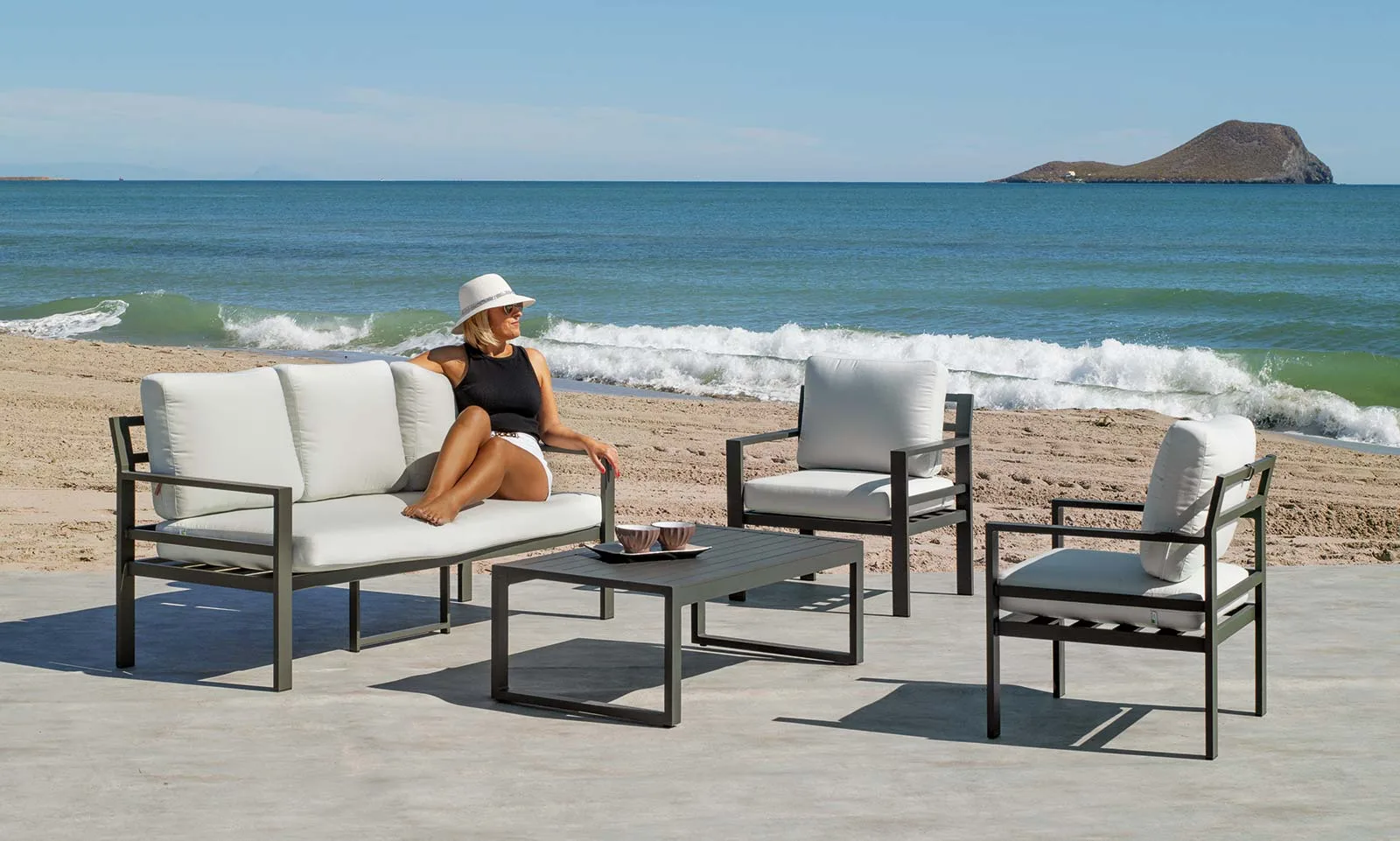 Encantada con la compra. Compré el sofá y la butaca de jardín Azores en champagne y la tapicería Molise beige y el resultado ha sido mejor de lo esperado. Los acabados son estupendos, la calidad del armazón parece fuerte y la tela me ha encantado. Otro detalle es cómodo de desenfundar. Me parece cómodo y bonito. Para el espacio que tengo la medida es perfecta. La entrega ha sido en fecha y venía muy bien embalado. Un gran acierto el haber comprado en Malibú Garden. 100% recomendable.