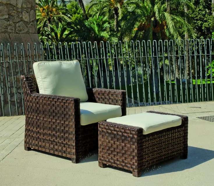 Elegante y funcional sillón relax de ratán sintético en color marrón y cojines desenfundables tapizados en tapicería Dralón Lux.
