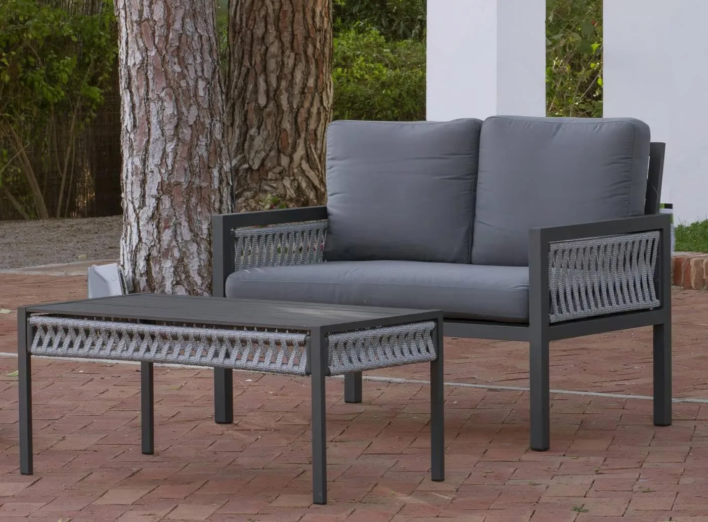 Sofá de jardín 2 plazas: Estilo y confort en aluminio y cuerda trenzada