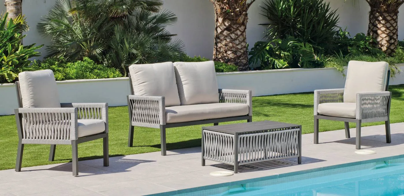 En el mundo del diseño de exteriores, cada detalle cuenta para crear un espacio que no solo sea visualmente atractivo, sino también cómodo y funcional. Y en esta búsqueda de la combinación perfecta entre estilo y comodidad, nuestro sofá de 2 plazas para jardín fabricado en aluminio y recubierto de cuerda trenzada, se presenta como una novedad excepcional en nuestra web.