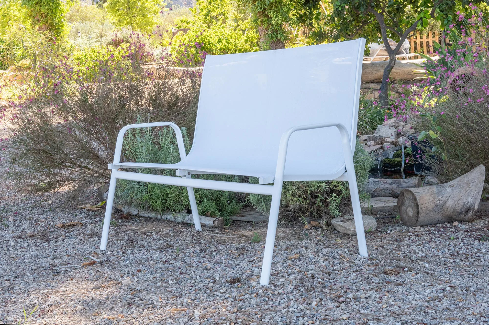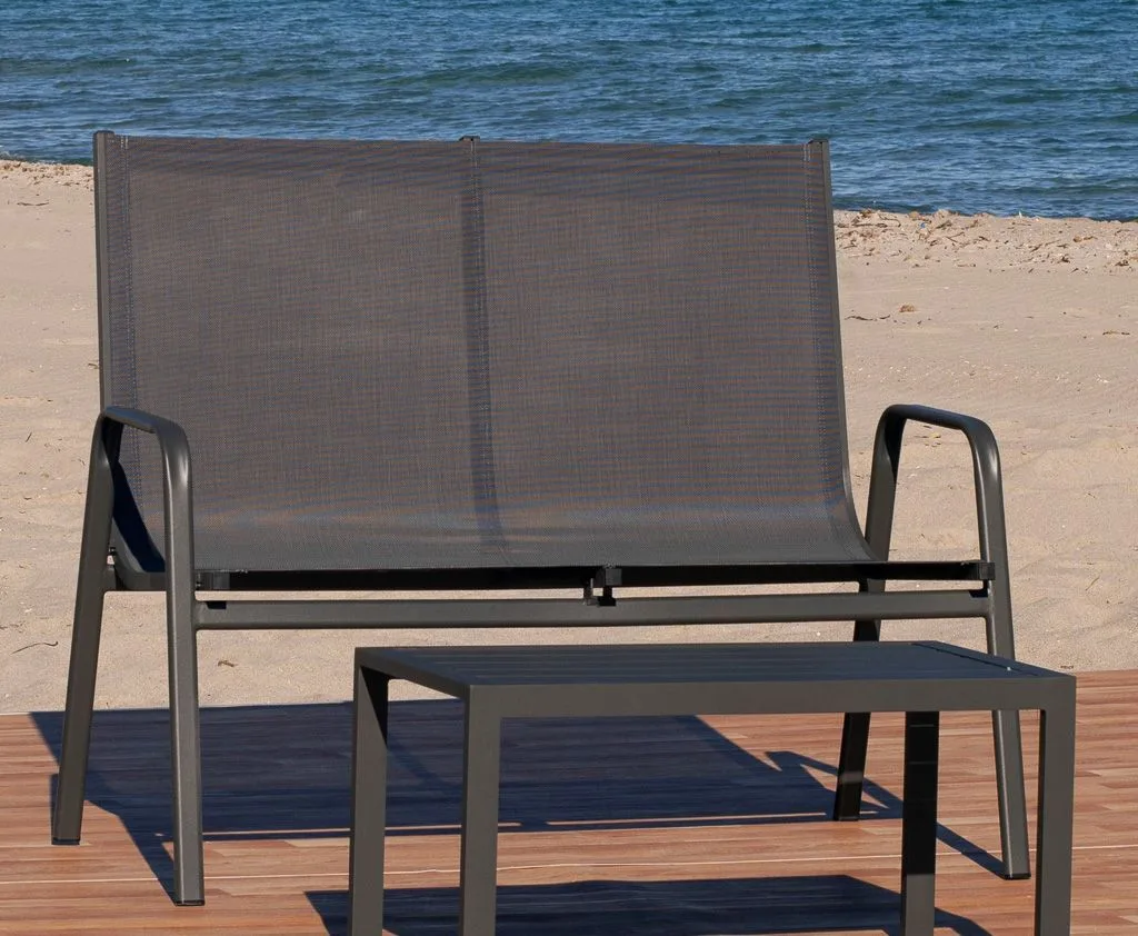 Nuestro sofá de balcón es la elección perfecta para aquellos que desean disfrutar de la comodidad de la terraza o balcón todo el año. Con un diseño clásico y elegante, este sofá banco de jardín se adapta perfectamente a cualquier espacio exterior y te asegura momentos de confort. El asiento y respaldo están fabricados en textilene, este banco de 2 plazas para terraza es perfecto para relajarse y disfrutar de un día soleado desde tu balcón. Además, el aluminio de alta calidad utilizado en su fabricación garantizan su durabilidad y resistencia a la intemperie.
