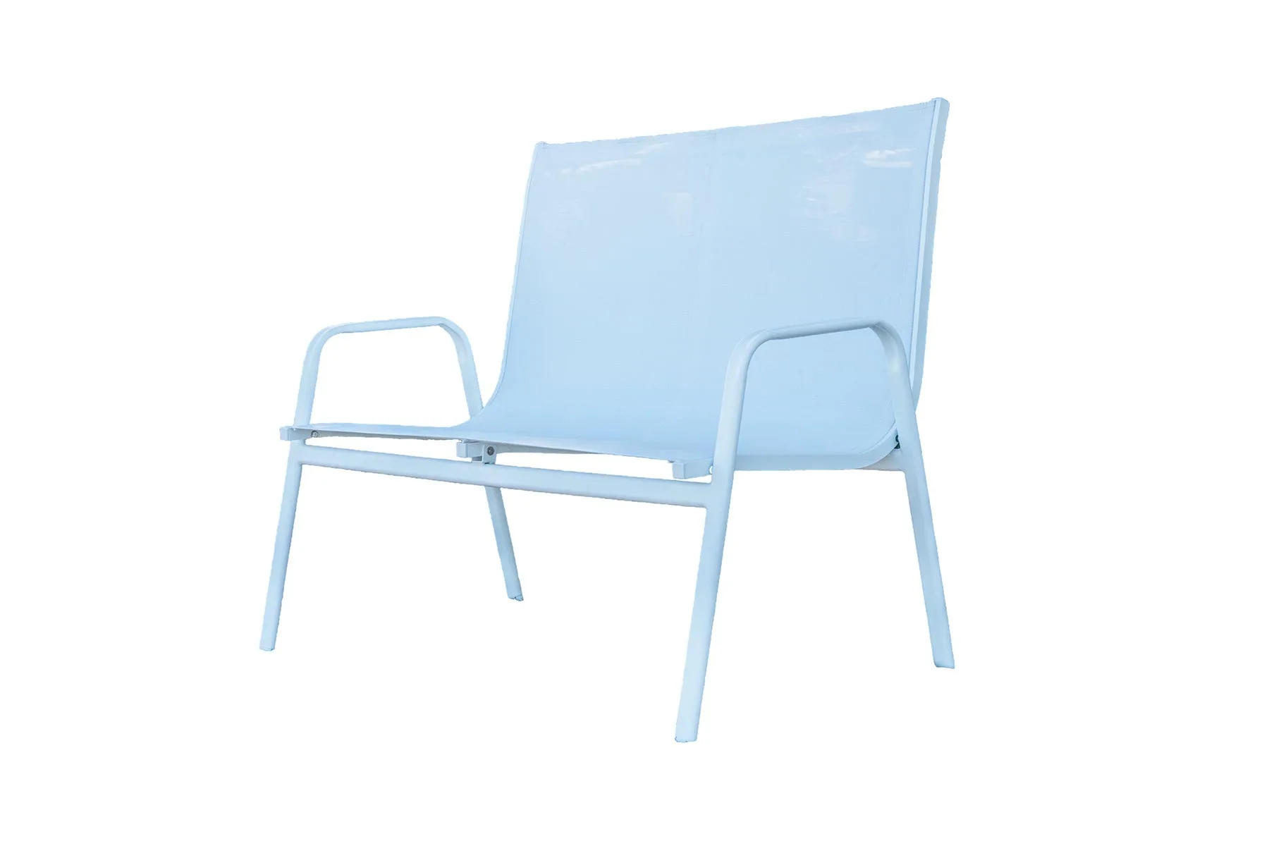 La banca de balcón está fabricada con aluminio y textilen. Está diseñado con perfiles gruesos para darle consistencia y fuerza. Es ideal para el uso doméstico o contract. Prueba a combinarlo con nuestra silla de textilene a juego y dale más vida a tu terraza.