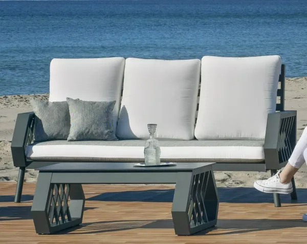 Además, su diseño de tres plazas ofrece suficiente espacio para que tres personas se sienten cómodamente y disfruten del entorno natural que les rodea. Ya sea para disfrutar de un libro al sol, charlar con amigos o simplemente relajarse, este sofá de jardín es el complemento perfecto para cualquier espacio exterior.