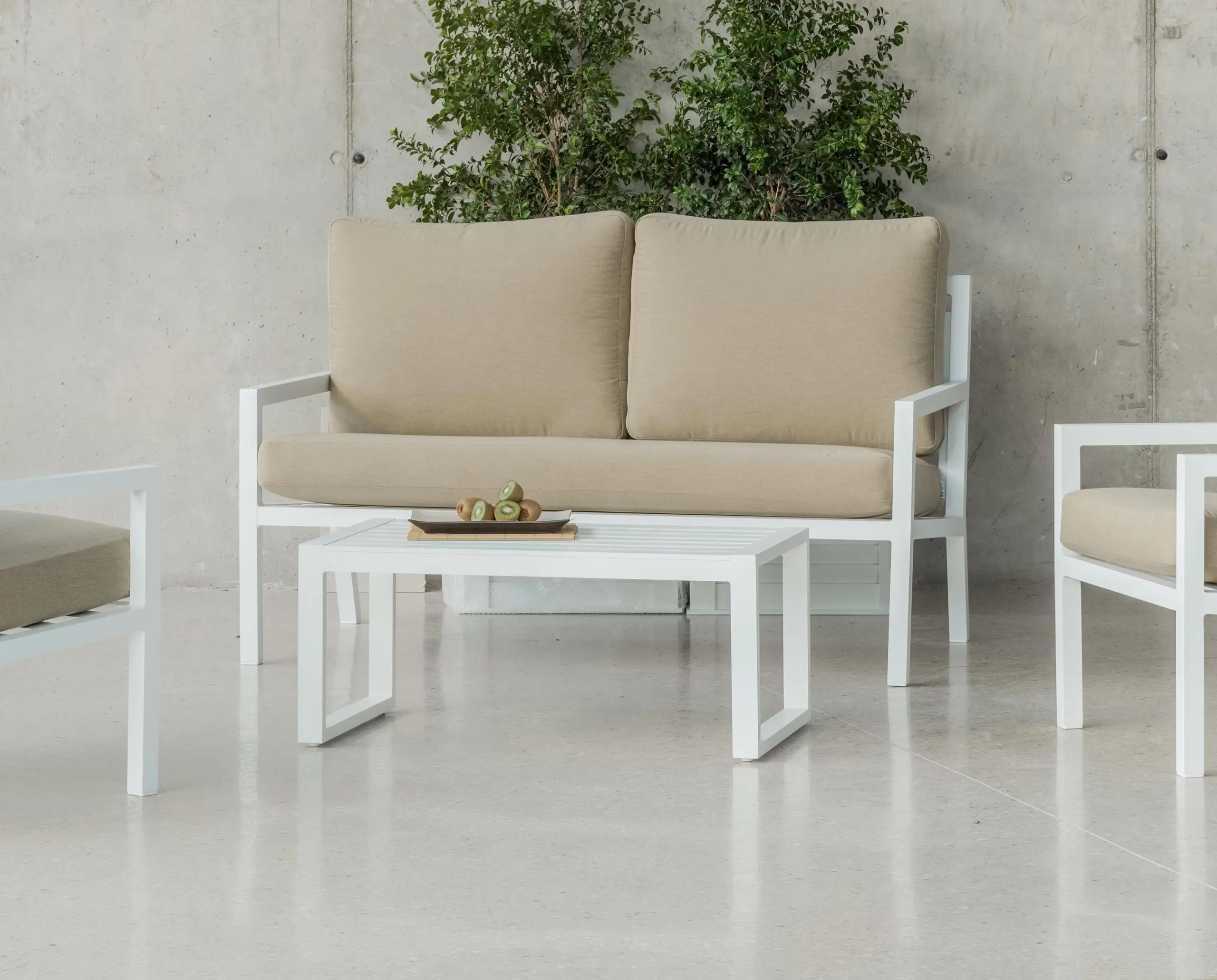 Descubre el equilibrio perfecto entre estética contemporánea y funcionalidad con este sofá de exterior de 2 plazas. Su diseño de líneas limpias y proporciones armónicas se integra a la perfección en terrazas, jardines y espacios de exterior de alto nivel. La estructura está fabricada en aluminio totalmente soldado, sin tornillos, lo que garantiza una apariencia pulida y una resistencia superior. Disponible en 8 colores exclusivos, puedes adaptar tu sofá al estilo de tu entorno, desde tonos neutros sofisticados hasta opciones vibrantes que marcan tendencia.