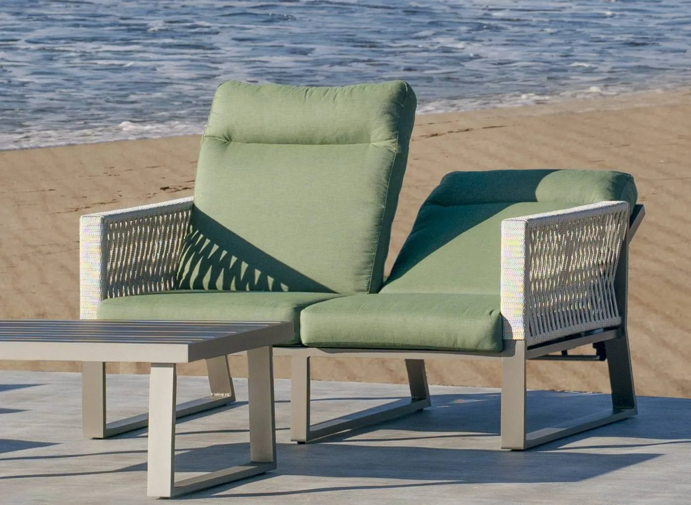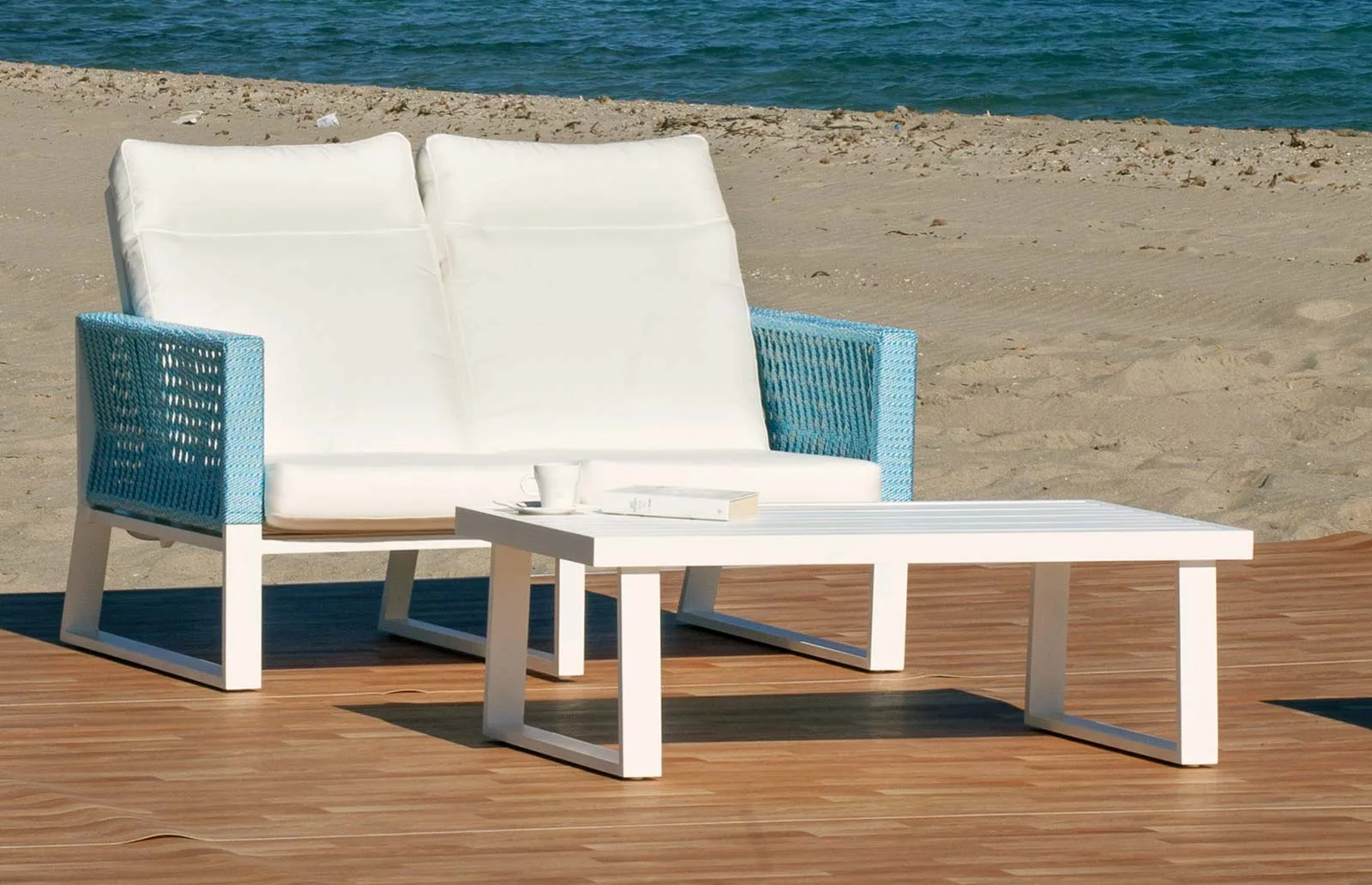 Los cojines de exterior para el sofá reclinable de 2 plazas están tapizados en Dralón o Dralón Lux, un material conocido por su alta calidad, resistencia al desgaste y facilidad de limpieza. Esta tapicería no solo es agradable al tacto, sino que también asegura una larga vida útil y un aspecto siempre impecable.