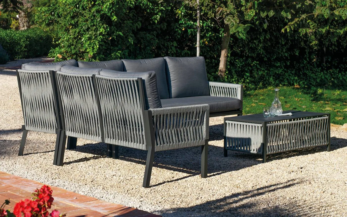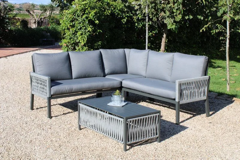 Sofá rinconera de aluminio y cuerda trenzada: Elegancia y comodidad para tu jardín