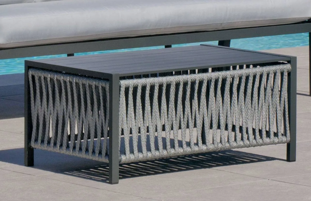 - 1 Mesa de centro de aluminio. Dimensiones (Ancho-Fondo-Alto): 90 x 50 x 40 cm.