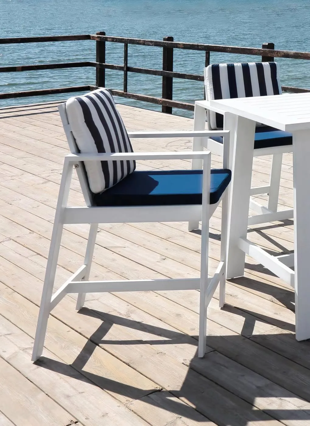 Puedes probar a combinar esta silla alta de terraza con nuestra mesa alta de aluminio Marlet. También, puedes ver el conjunto de taburetes y silla alta de terraza de la colección Marlet.