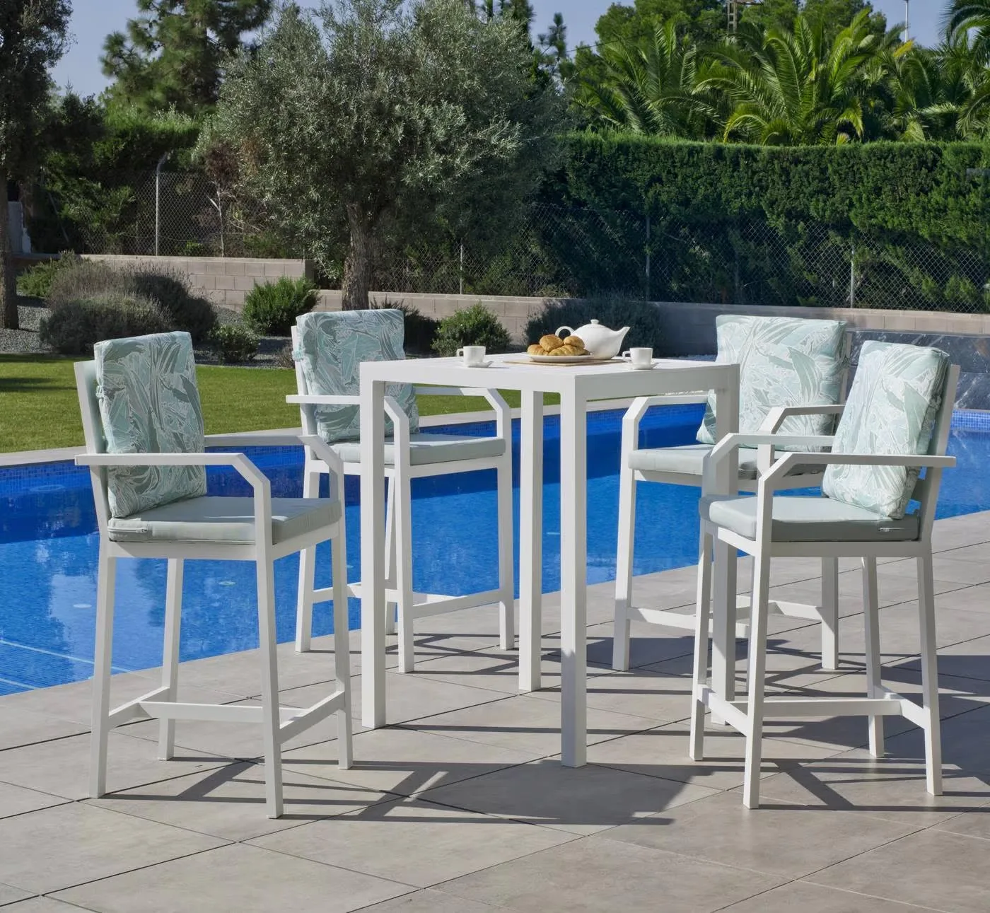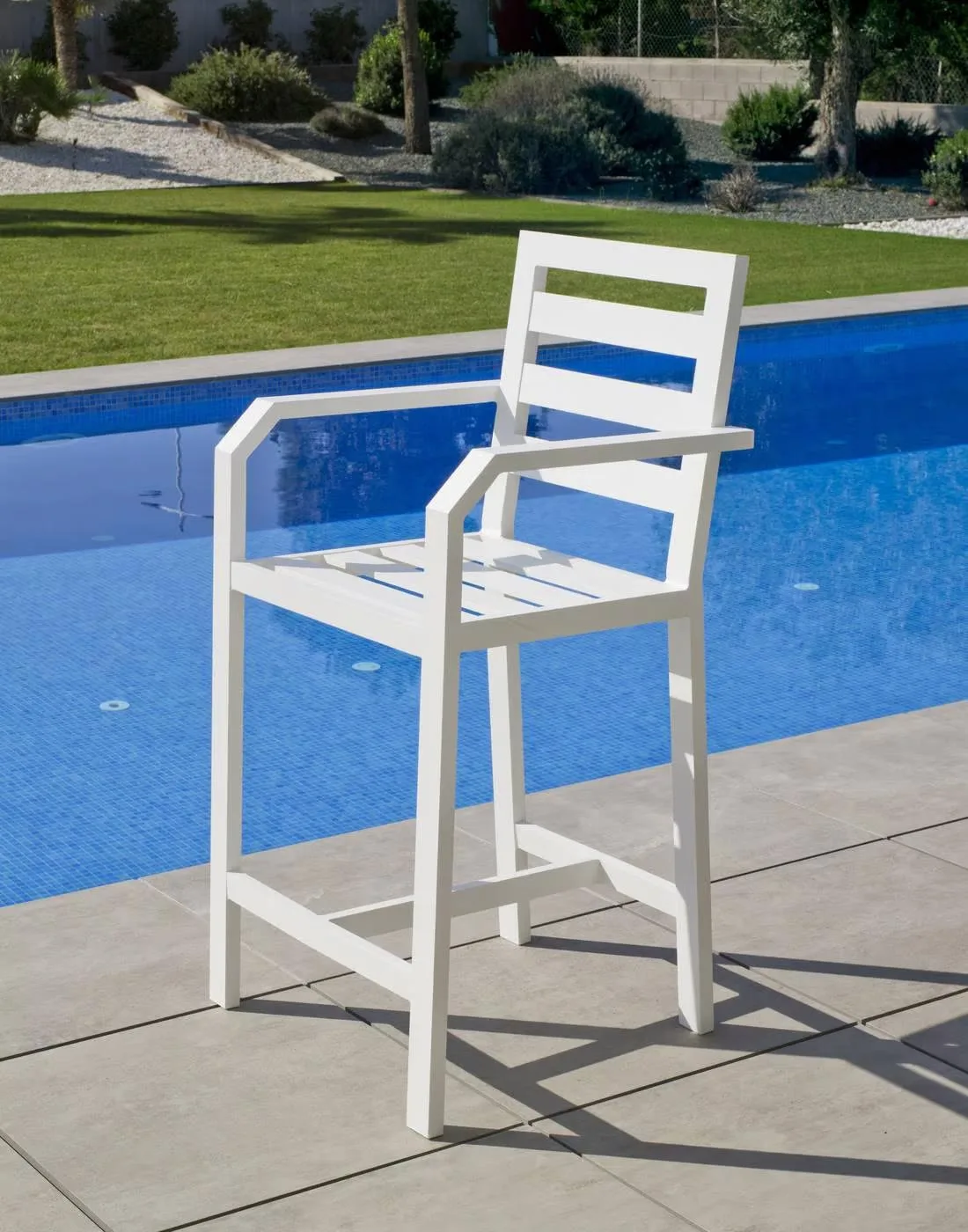 El taburete de bar alto que presentamos es una pieza de diseño exquisito que encajará perfectamente en cualquier ambiente exterior o interior moderno. Fabricado en aluminio de alta calidad, este taburete no solo ofrece un aspecto sofisticado, sino también garantiza durabilidad y resistencia a los elementos. Su estructura elegante y sus líneas limpias lo convierten en el complemento ideal para su terraza, jardín o bar.