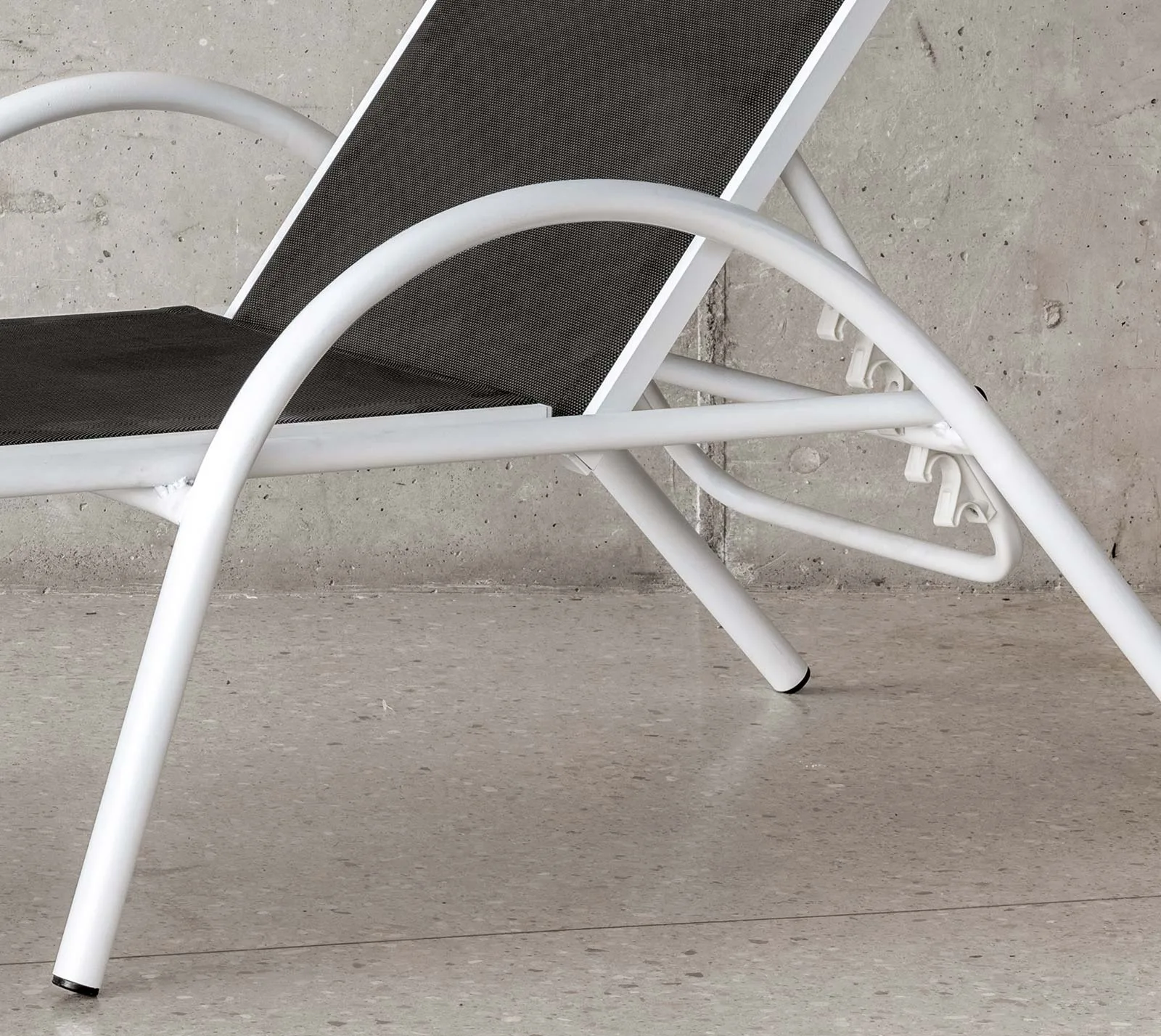 Cada elemento de la tumbona ha sido pensado para maximizar el confort. Desde la ergonomía de su diseño hasta la elección del textilene como material de superficie, que se adapta a tu cuerpo, proporcionando soporte y frescura incluso en los días más cálidos. La capacidad de ajustar el respaldo en 5 posiciones asegura que encontrarás la inclinación perfecta para tus momentos de relajación al aire libre.