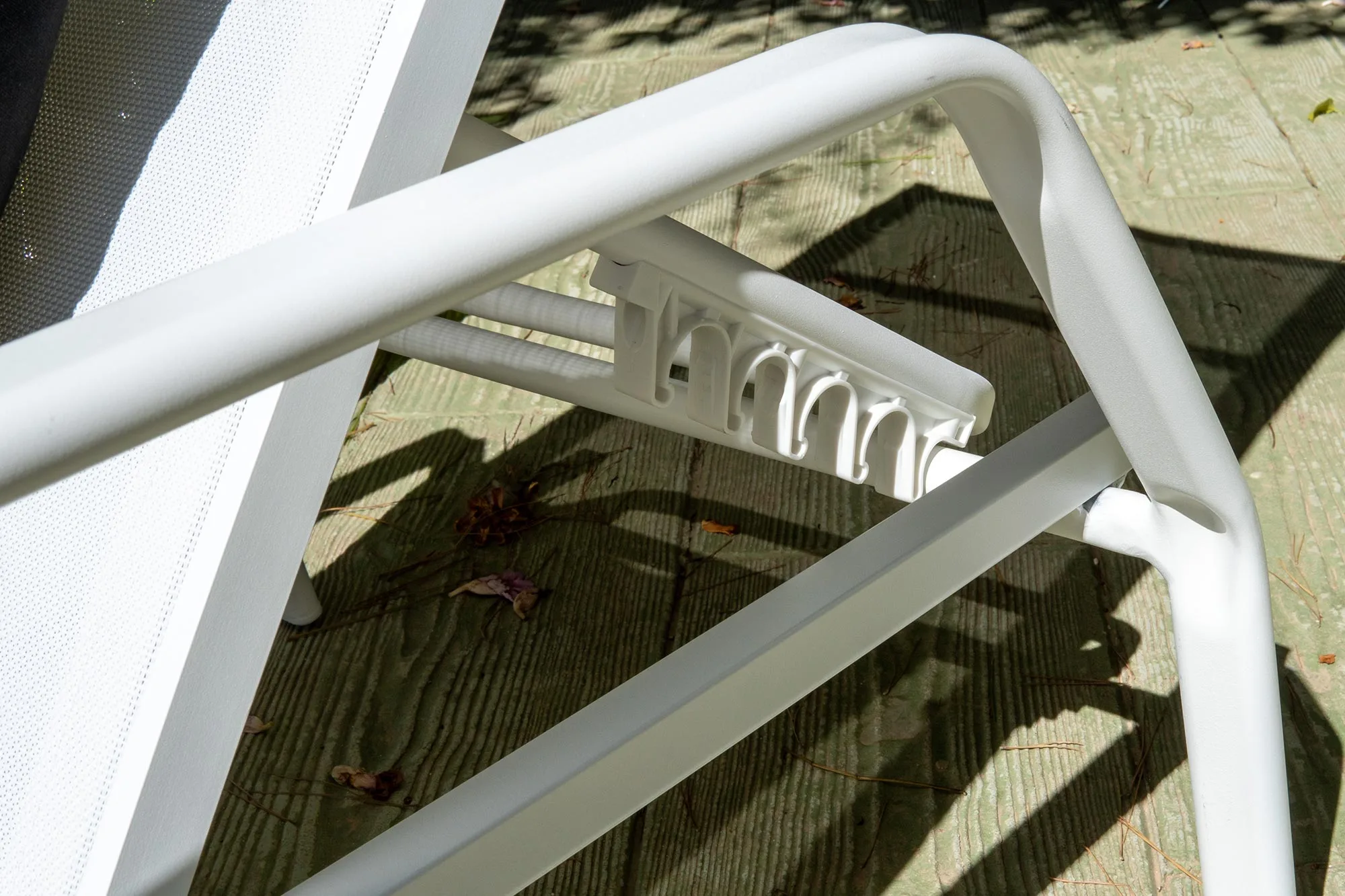 Tumbona apilable blanca para piscina con respaldo reclinable MarinaTumbona apilable para piscina con respaldo reclinable Marina